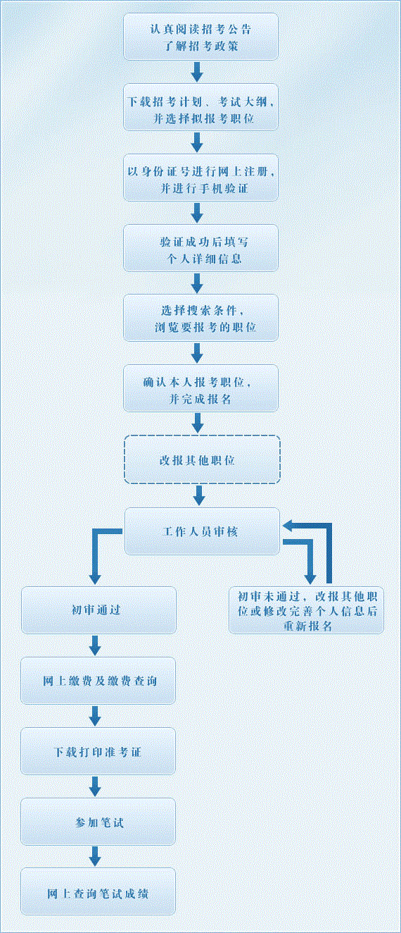 报考人员登录浙江省公务员考试录用系统注册并选择职位报名,逾期不再受理注册及报名。在此期间招录机关单位不作资格初审,报考人员可更改报考职位。