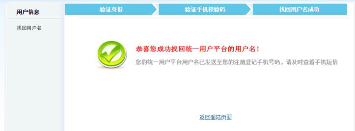 3.验证通过后,查看手机短信便可找回用户名。