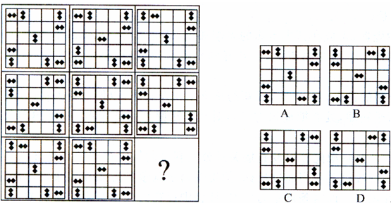 判断推理共35题,参考时限40分钟 - 1、 请从所给的四个选项中,选择最合适的一个填入问号处,使之呈现一定的规律性。( )
