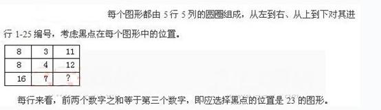 55.【解析】D。第一个图形中有两部分阴影,以后面积较大的那部分阴影每次顺时针旋转900;面积较小的那部分阴影在竖直方向上移动一格。二者若重叠则变为空白。