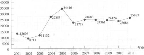 B.2001~2011年,境外来浙工作专家人次最多与最少的年份相差25705人