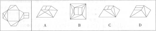 82、左边给定的是纸盒的外表面,下面哪一项能由它折叠而成?