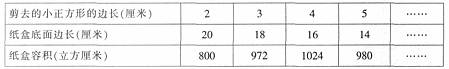 可见,剪去的小正方形的边长为4厘米时,纸盒容积最大。