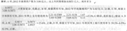 98 B【解析】根据文字可知,2012年我国网络购物用户增加了480万人,用户绝对增长量超出上年1463万人。则所求为4807-1463=3XXX万人,符合题意的是B项。