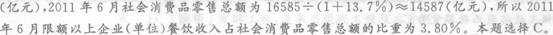 100.C【解析】2011年6月限额以上企业(单位)餐饮收入为627÷(1+13。1%)≈554