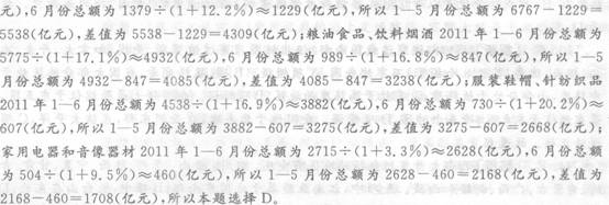 96.C【解析】题干中给出了2012年7月份社会消费品零售总额,结合图形可得出2011
