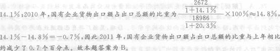 107.B【解析】2011年,国有企业货物出口额占出口总额的比重为