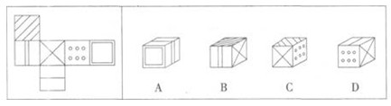 66、 左边给定的是纸盒的外表面。下面哪一项不能由它折叠而成?