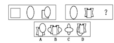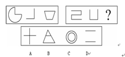每道题包括两部分图形:第一部分图为题干,分成两套。第一套有三个依一定规律排列的小图形,第二套有两个小图形和一个问号。这两套图形存在差异,但在图形排列方面具有共同规律。第二部分为供选择的四个小图形。考生必须从第一部分图形排列方式中找出两套图形的共同排列规律,并根据此规律从第二部分图形的四个选项中选出最适合取代问号的一个图形。正确的答案不仅使题干中的两套图形表现出一致的规律或最大的相似性,而且应使第二套的图形也表现出自己的特征。