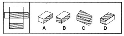 在右边的4个图形中,只有一个是由左边的纸板折叠而成。需要选出正确的一个。