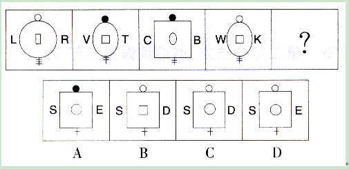 - 2、清从所给的四个选项中,选择最合适的一个填入问号处,使之呈现一定的规律性:
