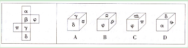 - 5、下面四个所给的选项巾,哪一项能由左边给定的图形折叠成?