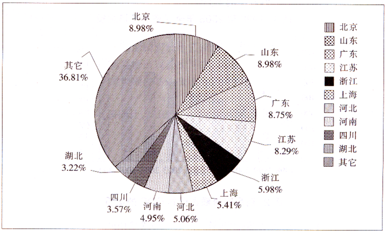 D.北京、山东、广东、江苏四个地区就占了三分之一强