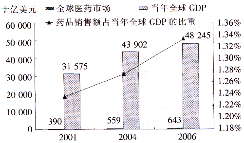 年全球药品总销售额仍可能达到7000亿美元。同时,药品销售额占世界GDP的比重有增大趋