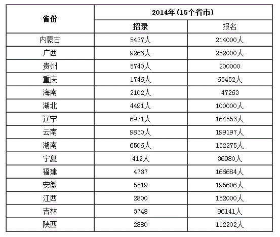 截止到2015年3月底,随着各省公务员(课程)考试公告的陆续发布,各省招录人数已明确,从目前掌握的情况看,今年公务员招录人数92482人,共有20个城市参加,分别是山西、安徽、四川、青海、陕西、江西、重庆、福建、内蒙古、贵州、浙江、辽宁、云南、海南、广西、宁夏、湖南、湖北、吉林、兵团。
