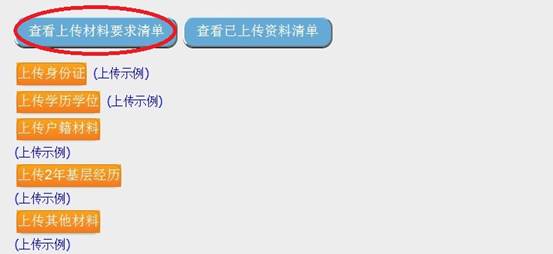 (四)点击“查看上传材料要求清单”可查看需要上传的材料要求。如下图: