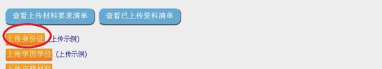 (五)依次点击“上传身份证”、“上传学历学位材料”、 “上传其他材料”等3个栏目,逐个上传资格复审材料。如下图: