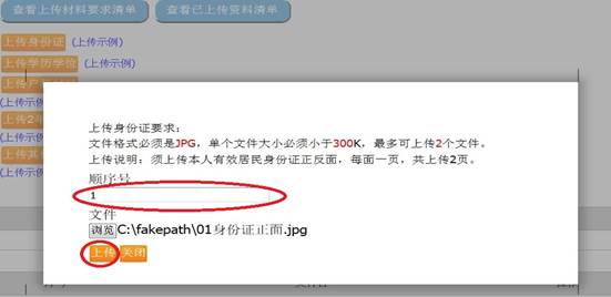 在上传页面中录入顺序号,并点击“上传”,上传完一个文件后可继续选择下一个文件,录入顺序号并上传,如下图:
