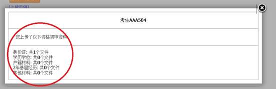 (七)查看资格复审材料上传清单。点击“查看已上传材料清单”可查看已上传的资格复审材料数量。如下图: