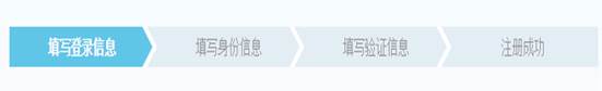 流程:填写登录信息→填写身份信息→填写验证信息→注册成功。