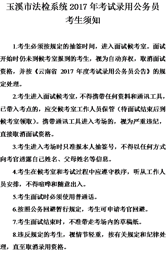 2.玉溪市法检系统2017年考试录用公务员考生须知