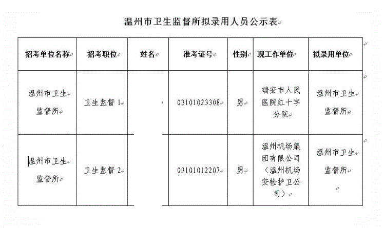 原标题:温州市卫生监督所2017年拟录用人员公示