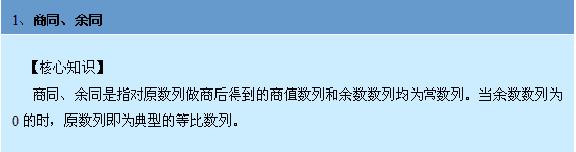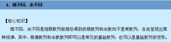 使用逐商法之后,需要重点注意做商后得到的商值数列和余数数列的规律。根据其表现形式的不同可以分为如下四种情况:商同、余同,商同、余不同,商不同、余同和商不同、余不同。