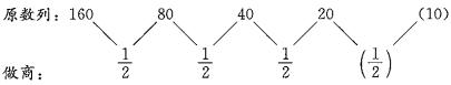 例1.(2009·江西)160,80,40,20,( )A.1/5 B.1 C.10 D.5[答案]C[解析]数列特征明显单调且倍数关系明显,优先采用逐商法。 商值数列是常数列。如图所示,因此,选C