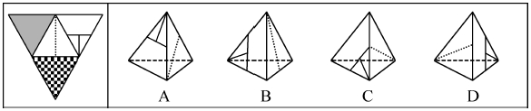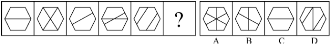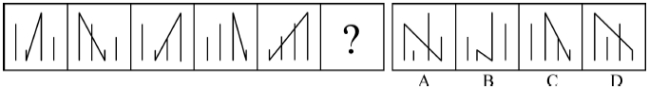 (一)每道题在左边的题干中给出一套图形,其中包括五个图,这五个图呈现一定的规律性。在右边给出一套图形,其中有四个图,从中选出唯一的一项作为保持左边五个图规律性的第六个图。