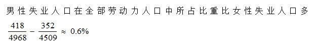 134.男性失业人口在全部劳动力人口中所占比重比女性失业人口________。