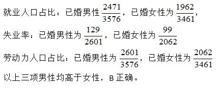 B.已婚男性的就业人口占比,失业率,劳动力人口占比普遍高于已婚女性