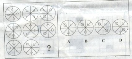 【解析】B。每行中第一个图形顺时针旋转45度,然后与第二个图形叠加。