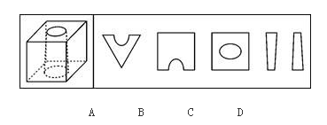 63、下列的立体图形是从立体中控出一个圆锥台孔后形成的,如果任一面剖开,以下哪一个不可能是立体图形的截面?