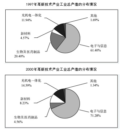 129.A 【解析】就增加比例的项目看,电子与信息产业的比例增加得最多,不论总产值如何,电子与信息产业的总额都是增加最多的,故选A项。