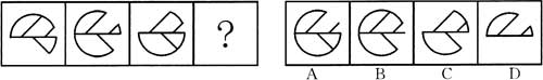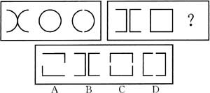 69.D[解析]一、二两个图形重叠后可形成一个完整的圆,依此规律,三、四两个图形重叠后也形成一个完整的圆,符合题意的为D项。