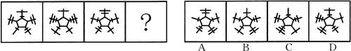 74.D[解析]观察题干图形可知,三类圆圈(实心、空白、花点)中,同类圆圈均不相邻,且相应地处于三个圆圈组成的正三角形的顶点。据此即可排除A、B、C三项。