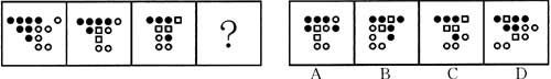 70.B[解析]黑点不动,每行的白点整体左移一格,当黑白两点相重时,该元素变为小方格。当方格左移遇到黑点时,黑点移到方格原来的位置;当方格左移至空白区域时,又还原为白点和黑点。据此规律本题正确答案选B。