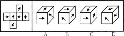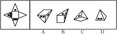 73.C[解析]本题可采用排除法。A项中,有两个黑方块的面与一个黑方块的面是相对面而不能相邻,排除;B项中,有一个黑方块的面应与有三个黑方块的面位置互换;D项中,有两个黑方块的面与空白面的位置错误。故本题正确答案为C。