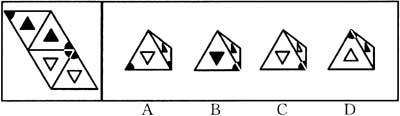 72.A[解析]本题可采用排除法。B项中,相邻的两个面中黑色三角形的顶点不可能相对,排除;C项中,相邻的两个面中白色三角形的顶点不可能相对,排除;D项中,顶点上方为黑色圆弧的白三角形所在的面,对应的右边相邻的面应为白色三角形而非黑色三角形,D项也排除。