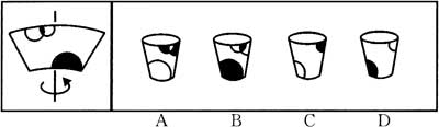75.D[解析]观察题干图形可知,所形成的圆台下部为黑色圆(部分),上部为两白色的相交圆(部分),且两圆左大右小,相交部分为黑色,据此可排除A、B、C三项。