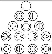 6l【答案】D。解析:各小图形围绕中心逆时针旋转,三角形每次旋转l格,圆圈每次旋转2格,正方形每次旋转3格,综上所述,选D。