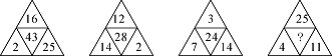 【解析】原数列具有如下关系:2+16+25=43,12+14+2=28,3+7+14=24,4+25+11=(40)。