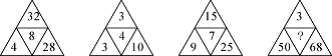 【解析】原数列具有如下关系:4+32+28=82,3+3+10=42,15+9+25=72,3+50+68=(112)。