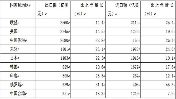 114. 【正确答案】B 我国对欧盟的进出口差额是3560-2112=1448,中国香港是2680-155=2525,美国是3245-1222=2023,中国台湾是1249-351=898。差额最大的是中国香港。