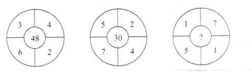 65.C.【解析】该数列为图形数列。图形中左下角和右下角两数之差与左上角、右上角的乘积是中间数字。依此规律,第三个图形中间的数=(5-1)×1×7=28,选择C选项。