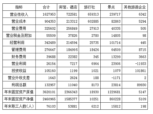 D选项,比重计算类,景点的年末职工人数为15812,而宾馆酒店的年末职工数为53881,也就是说景点的年末职工人数不到宾馆酒店的一半,也就不可能到所有旅游部门年末职工人数的一半,因此,选项D选项错误。