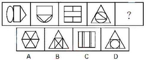 71.【解析】B。题干图形的封闭空间的数量分别为3、4、5、6个,因此问号处应填入一个含有7个封闭空间的图形,只有B项符合。