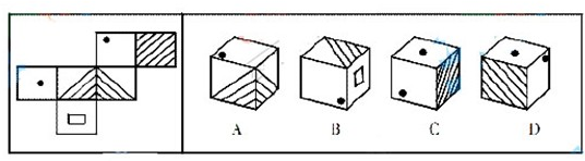 71.【解析】A。重构类。用对立面不可同时出现排除B选项;运用华图上课教授的相对面之间的移动法,将中心有一个小黑点的图移过去,三图转为相邻,C选项有小黑点的两相接的面错误,D选项三个图的时针方向错误。