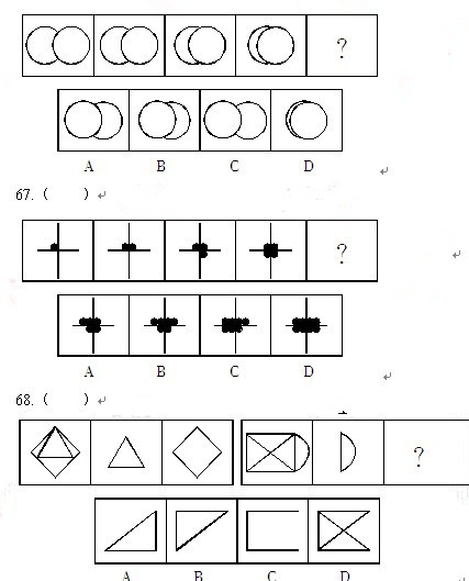 66.【D】解析:考查平移。两个圆圈每次都是相互靠近地平移,选D。