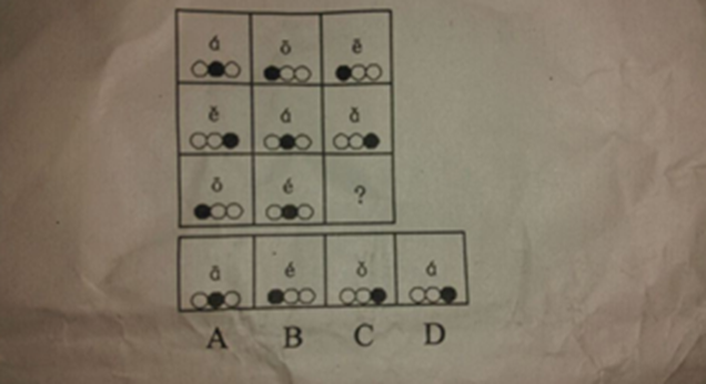 71.【解析】C。样式遍历。纵行观察规律,每一纵行都应包含a、e、o三个字母,所以选C。